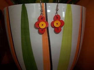 Zacznijmy od tego że wczoraj miałam bardzo miłą niespodziankę w postaci moich dawno (kilka lat z jedną) niewidzianych koleżanek:) wyciągnęły mnie z chałupki na spacer muszę przyznać że brakowało mi tego i miło spędziłam z nimi ten czas:) a i śmiechu było kupe:) mam nadzieję na częstsze spotkania:) zmotywowało mnie to do pracy ale nie tylko spotkanie też i miłe słowa pod moimi pracami na fb i gdy wróciłam do domku zabrałam się za kolejny wachlarz ale jak to mówię zawsze coś musi mi wene zepsuć i skończył mi się klej...:\ dziś robię jego większy zapas:) ale do rzeczy...:)kilka dni temu powstały moje pierwsze kolczyki:) metodą quillingu