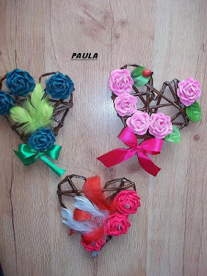 dziś króciutko pokażę Wam jedynie moje kolejne serducha które zrobiłam dla koleżanki:) zielone poleciało do babci:)  wykonane z papierowej wikliny róż z krepy drewnochronu i lakieru:P zakupiłam dwa nowe kolorki krepy także będą nowe kolorki kwiatów:)